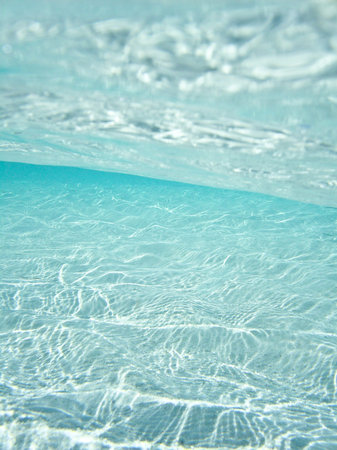 Crystal blue ocean with white sand in underwater on Bahamas islands