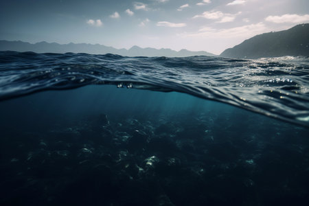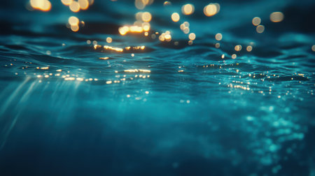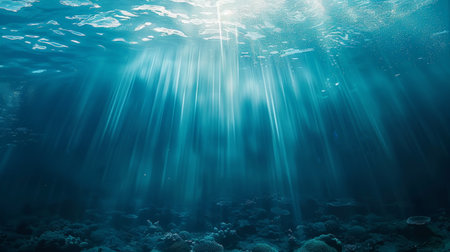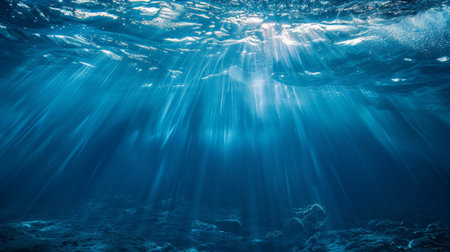 Underwater perspective Sunlight pierces deep blue water, creating a dreamy, ethereal vista