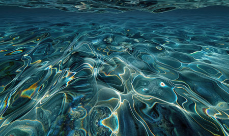 Capture the mesmerizing beauty of sunlight reflecting on the surface of crystal clear ocean water, showcasing the tranquility and serenity of nature.