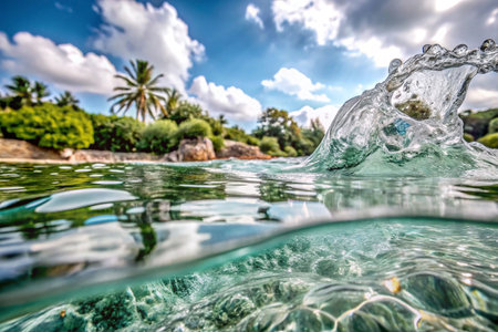 Crystal-clear water splashing near tropical beach.