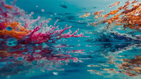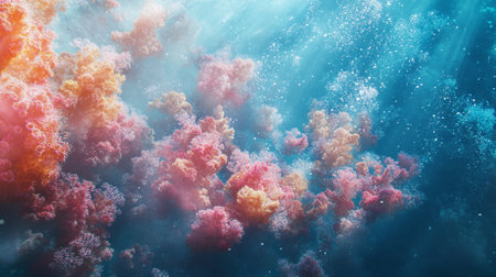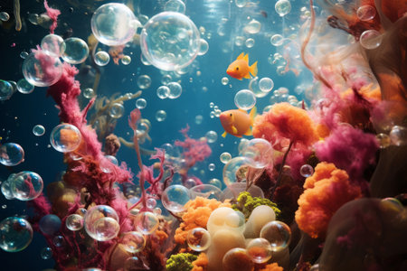 Enchanting oil bubbles texture on a mesmerizing and captivating vibrant coral reef backdrop