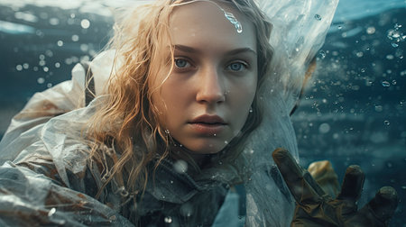 Plastic trash in the ocean. Environmental pollution. The sea is covered in plastic and dead sea creatures. A global problem, a threat to ocean wildlife and calling for urgent action to protect the environment