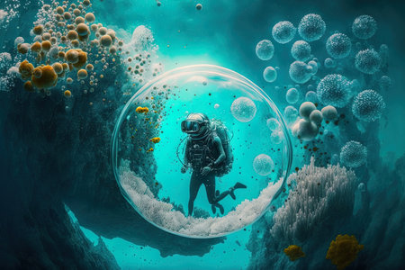 underwater photographer capturing bold colors and textures of the ocean floor, created with generative ai