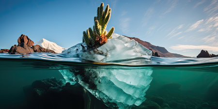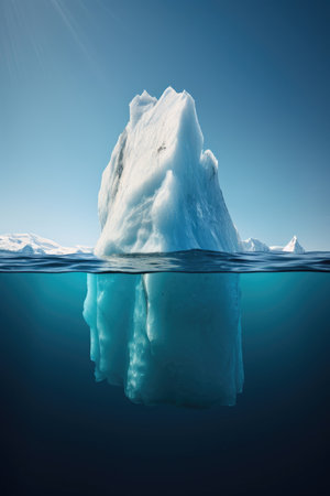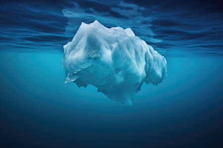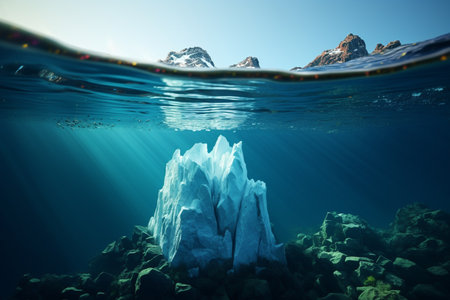 An iceberg concealed beneath turquoise waters serves as a chilling symbol of climate crisis. Concept Environment, Climate Crisis, Natural Disasters