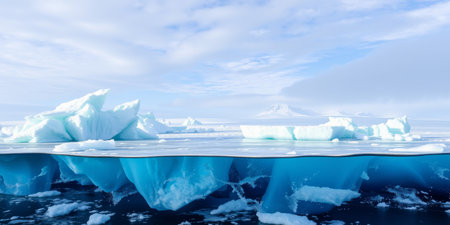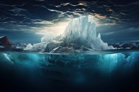 submerged iceberg surrounded by floating ice debris, created with generative ai