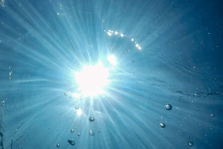 Under water sun beams and rays with bubbles - soft focus