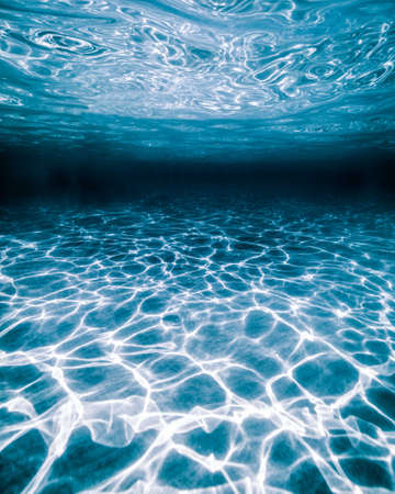 Underwater. Underwater Background Of The Ocean Bottom. Dark blue ocean surface seen from underwater. Underwater with fishes. Turquoise ocean water with sandy bottom underwater. und