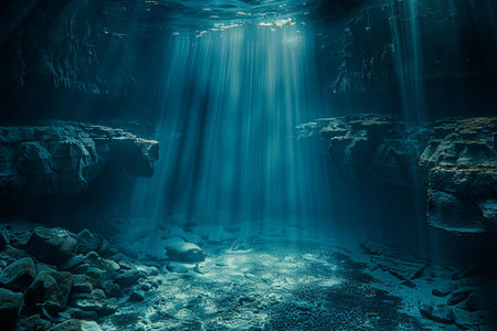 Tranquil underwater scene with rays of sunlight