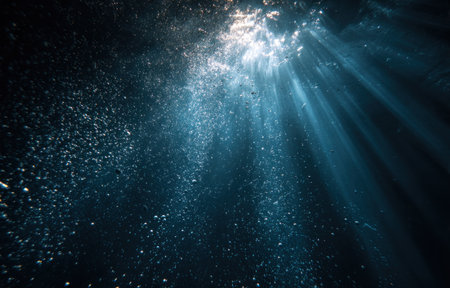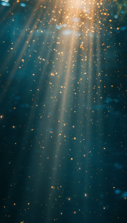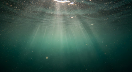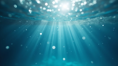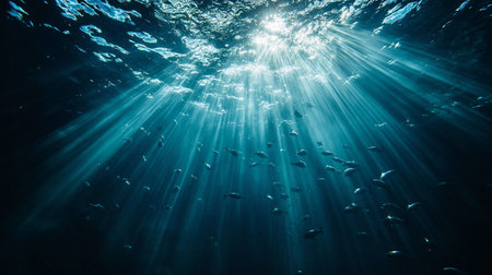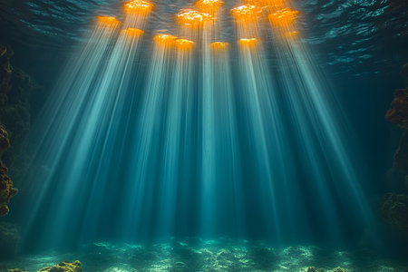 Sunlight rays illuminate underwater world creating a shimmering effect