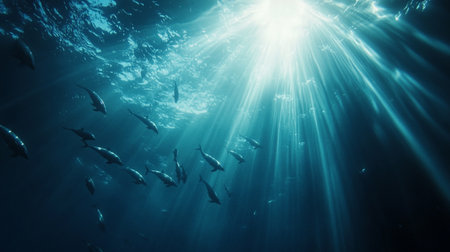 Underwater perspective Sunlight pierces deep blue water, creating a dreamy, ethereal vista