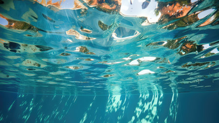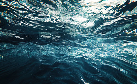 A mystical dance of light and waves: an underwater perspective of the beauty of the ocean, capturing the serene yet powerful nature of water