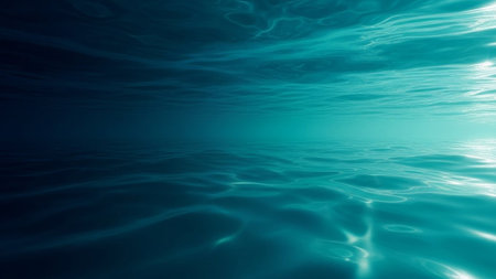 Sunlight streams through deep turquoise water, creating shimmering ripples and casting shadows in this serene...