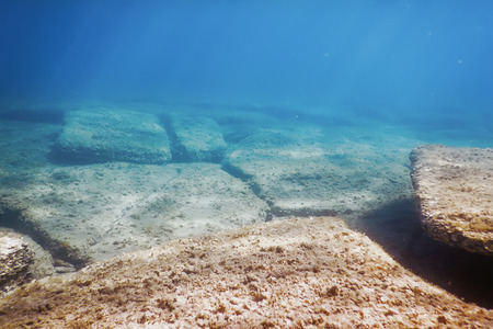 Underwater view of the ruins of the ancient temple in the Red Sea