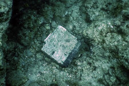 The ruins of the ancient shipwreck on the seabed.