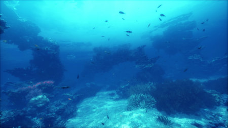 Underwater Scene Sunlight, fish Underwater Life.