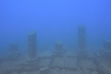 Underwater view of the ancient pillars of the temple of Zeus in the Red Sea