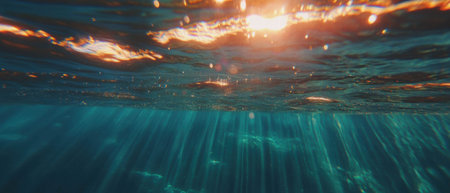 Stunning Underwater Scene with Sunlight Rays Penetrating the Deep Blue Ocean Water Creating a Serene and Tranquil Atmosphere Beneath the Surface