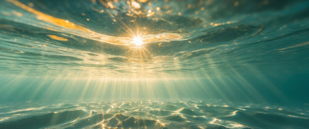 AI Generated. Underwater Scene with Sunlight Streaming Through Crystal Clear Water Surface Background