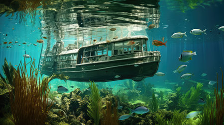 submersible exploring the depths of a vibrant coral reef, created with generative ai