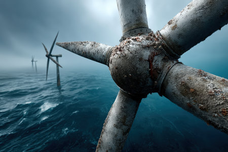 close-up of turbine blades designed for marine currents, created with generative ai