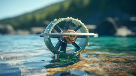 close-up of underwater turbine blades spinning, created with generative ai