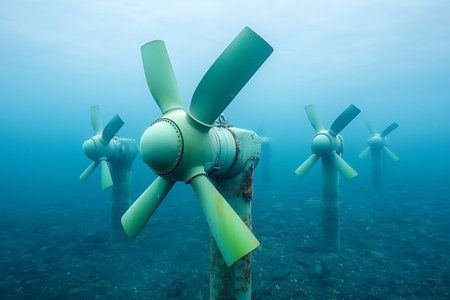 underwater turbines harnessing ocean currents, created with generative ai
