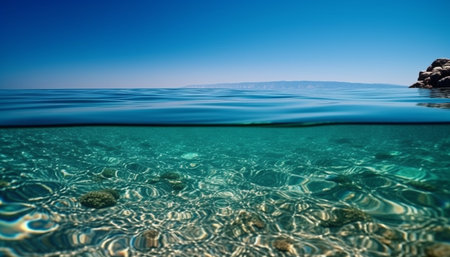 Swimming with majestic sea life in tropical paradise generated by artificial intelligence
