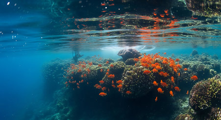 Underwater adventure: swimming with colorful fish in a tropical reef generated by artificial intelligence
