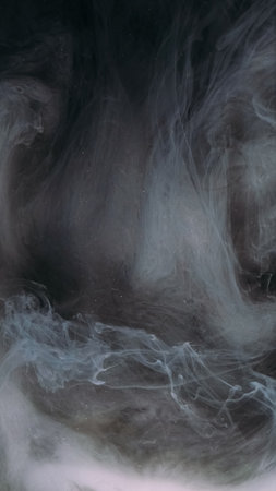 Mysterious cloud. Stream wave. Defocused dark color mist smoke fume splash paint ink texture water liquid on abstract art background.