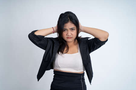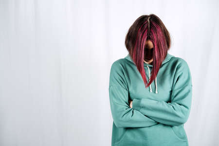 Mental health, depression, Anger, Anxiety, Bipolar disorder and panic attacks concept. Studio portrait of unhappy young woman