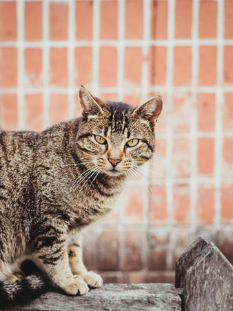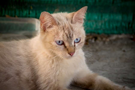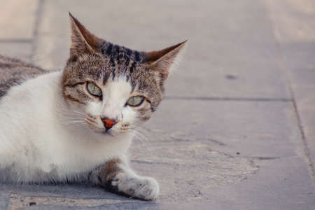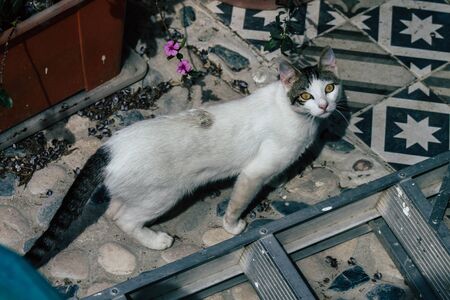 View of domestic cat living in the streets of Limassol in Cyprus island