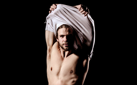 Sexy male bare torso. Man undressed shirt. Muscular guy with sexy torso. Athletic young boy showing his perfect naked body.