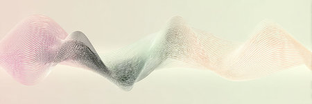 An abstract composition features a flowing wave-like structure composed of numerous parallel lines. The image showcases a blend of cool colors, predominantly blues and whites, with a subtle gradient effect. The design suggests a digital or scientific context. Suitable for graphic design or conceptual presentations.