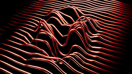 Stylish red metallic black background with lines and waves. 3d rendering 3d illustration.