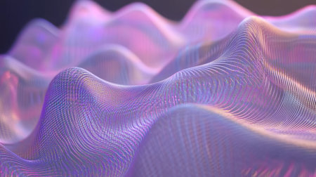 Purple waves flow gracefully, formed from countless illuminated dots creating a sense of movement and depth Perfect for futuristic and technology related designs.