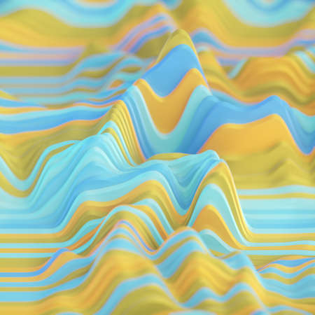 Abstract 3d rendering of wavy surface. Futuristic background with dynamic waves.