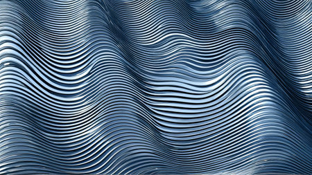 This image showcases an abstract view of textured metal waves, featuring smooth curves and light reflections. Ideal for artistic and industrial designs.
