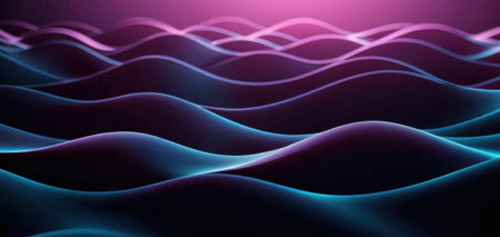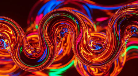Vibrant neon light flowing abstract curve shape background. Colorful liquid surface digital artwork. Optical illusion illustration.