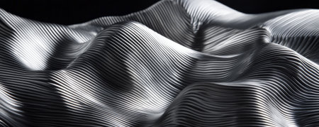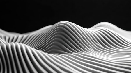 Abstract design with fluid, undulating black waves in monochrome, creating a striking and modern visual effect