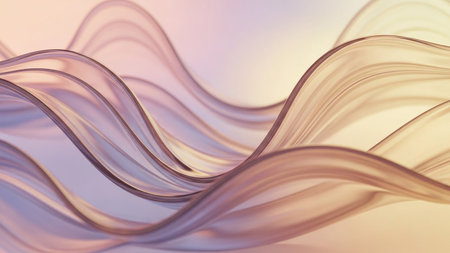 Delicate showing soft pastel wavy translucent ribbons of light in a gentle flowing abstract composition keywords:...