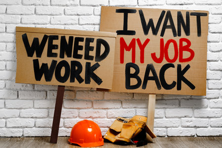 Ptotestive placards against job loss during coronavirus pandemic