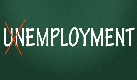 Businesspeople Looking At Unemployed Concept With Crossing Off Letters Un On Brick Wall. Job And Employment Concept