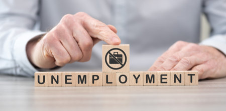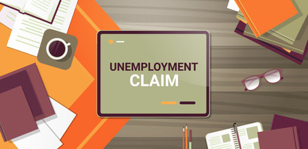 unemployment claim on tablet pc screen work crisis jobless employee job reduction concept