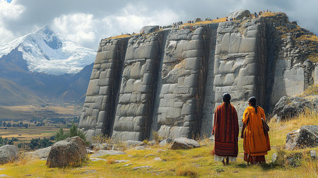 huge stone walls of Sacsayhuaman on the background of mountains