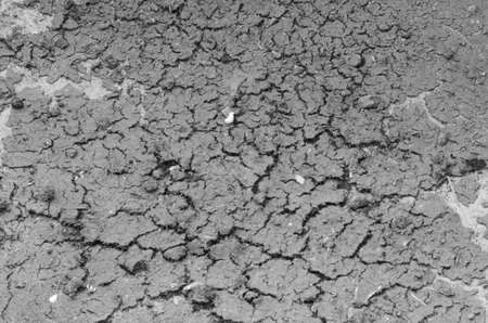 Dry soil texture for background. Black and white. Copy space.
