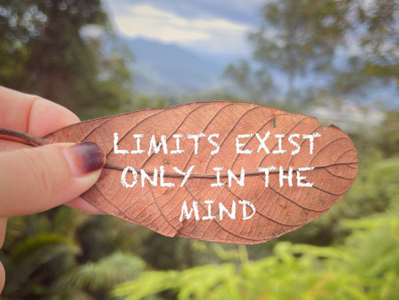 Motivational and inspirational wording. Limit Exist Only In The Mind written on dead leaf. With blurred styled background.
