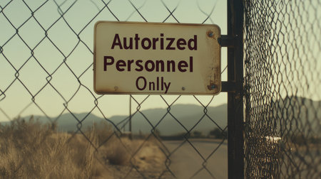 Temporary fencing and locked gate with Authorized Personnel Only sign