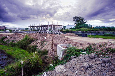Landscape of the construction area in the evening