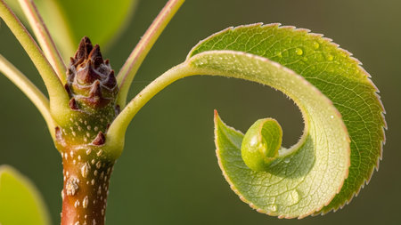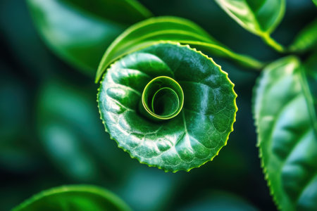 Stunning Spiral Formation in Young Tea Leaf Showcasing Natural Geometric Beauty and Texture