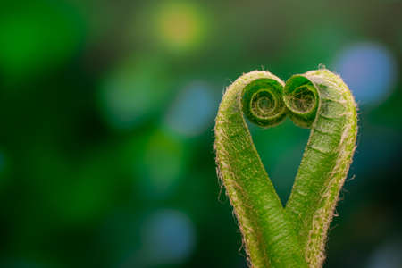 closed leaf of fern on a green background, concept of life,